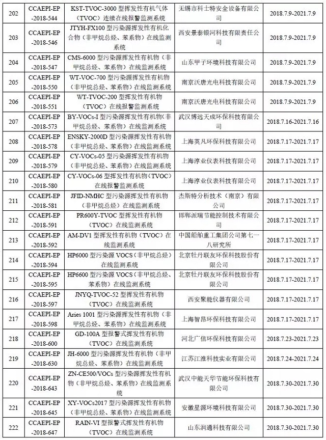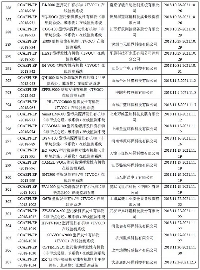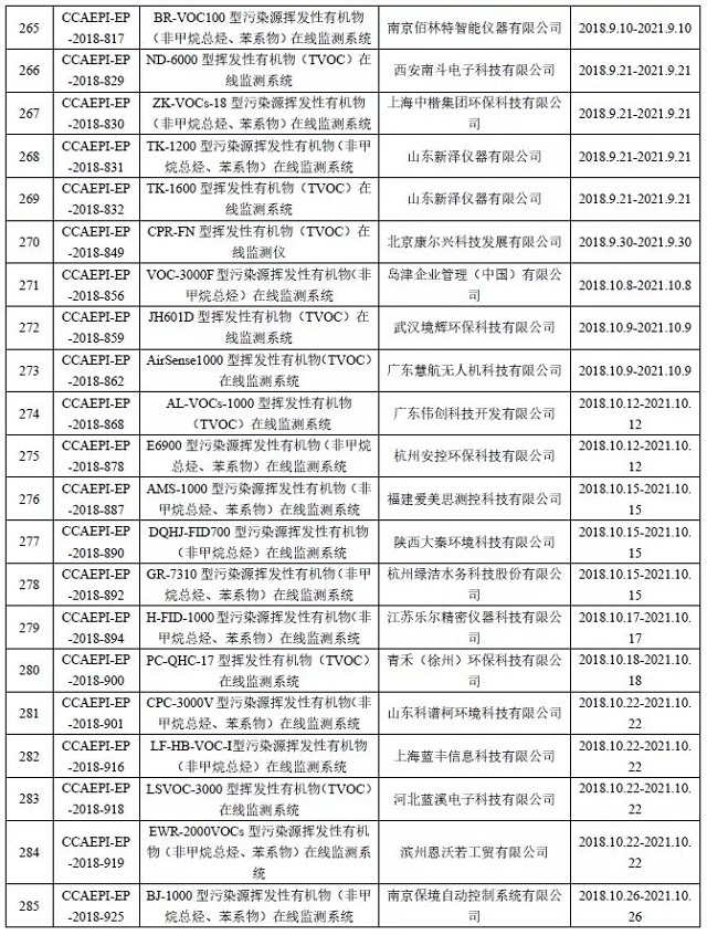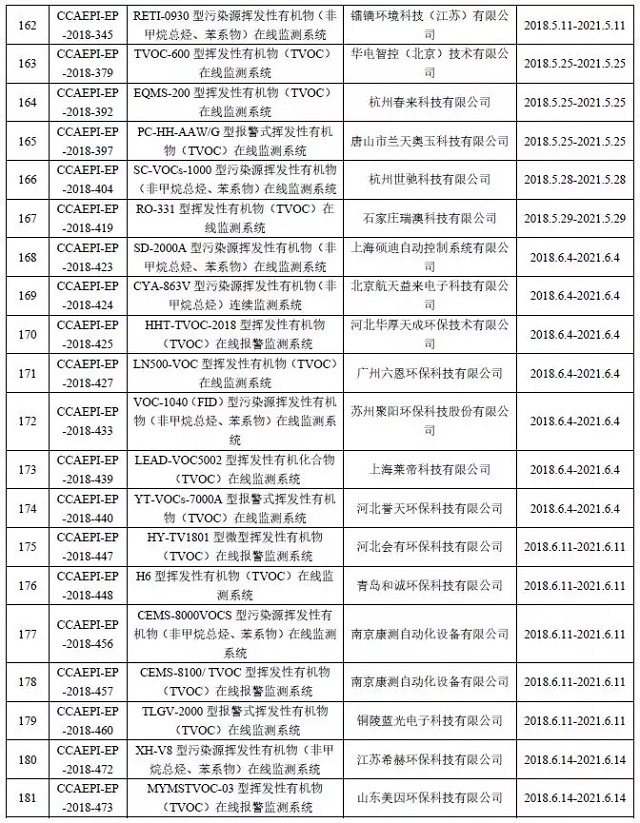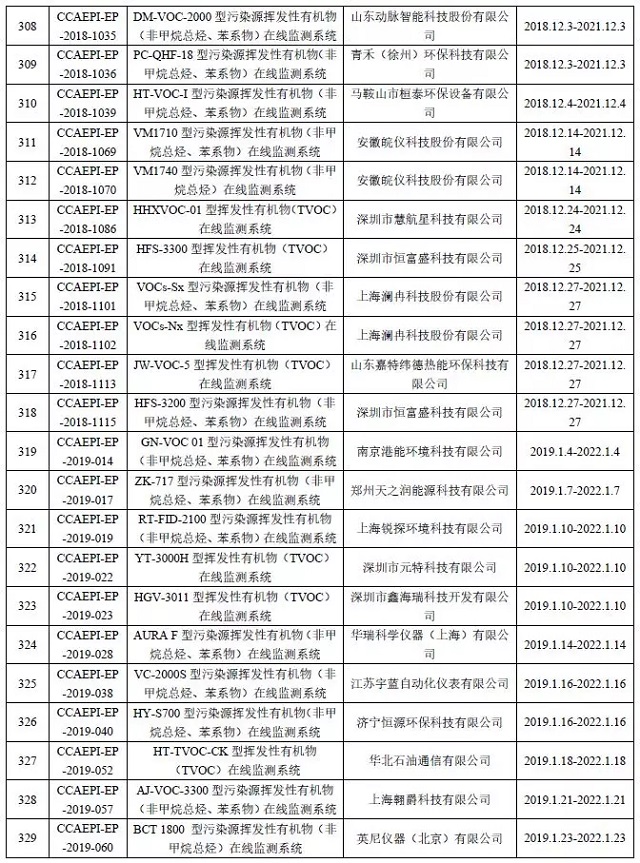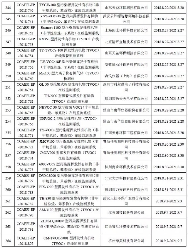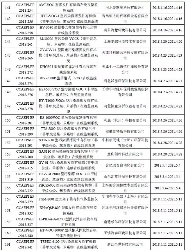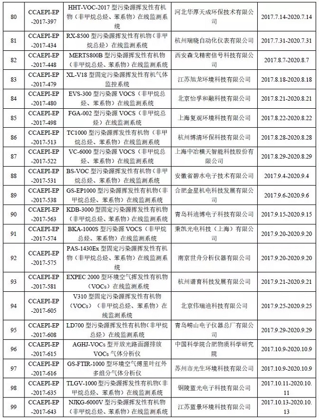揮發(fā)性有機物儀器設(shè)備認證獲證單位名錄