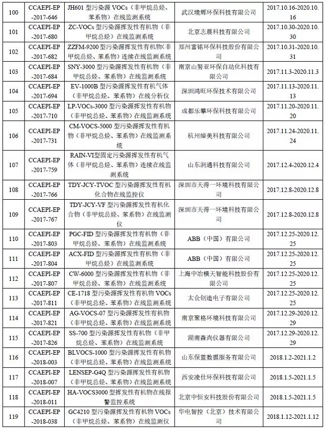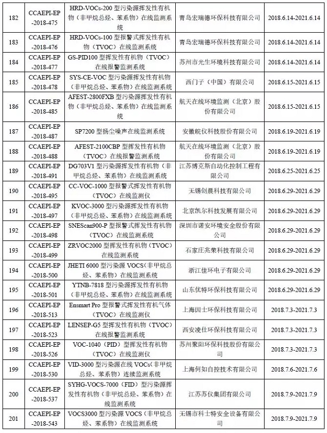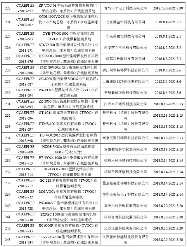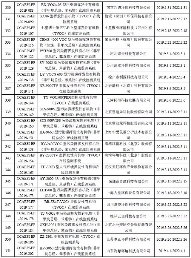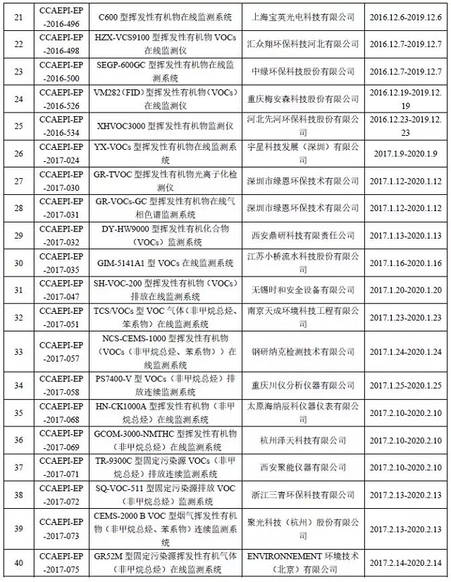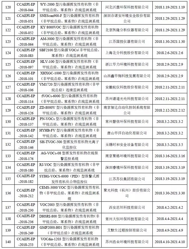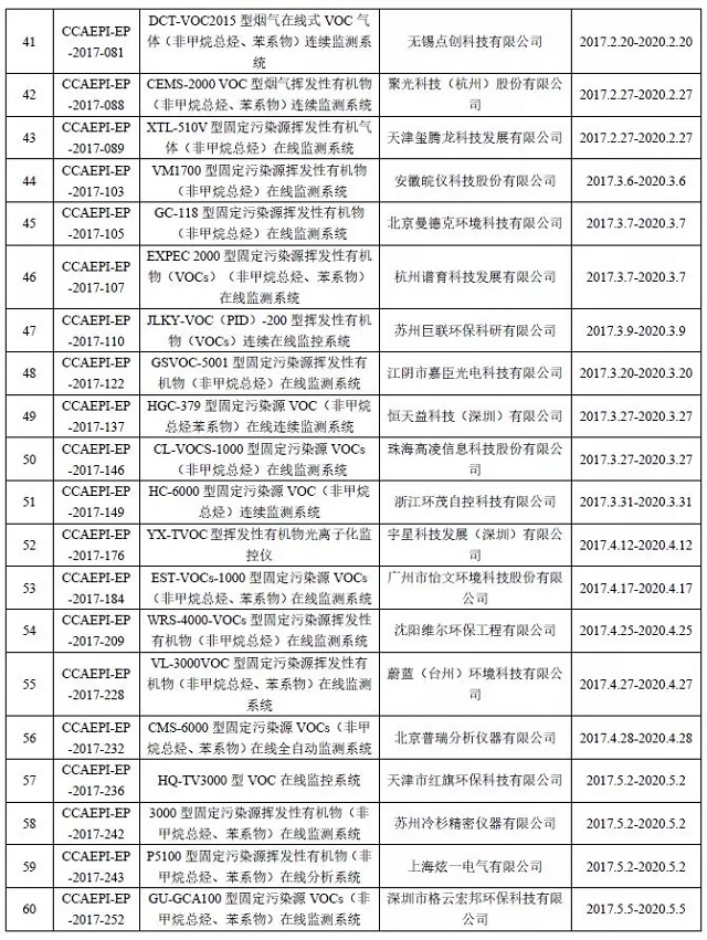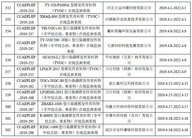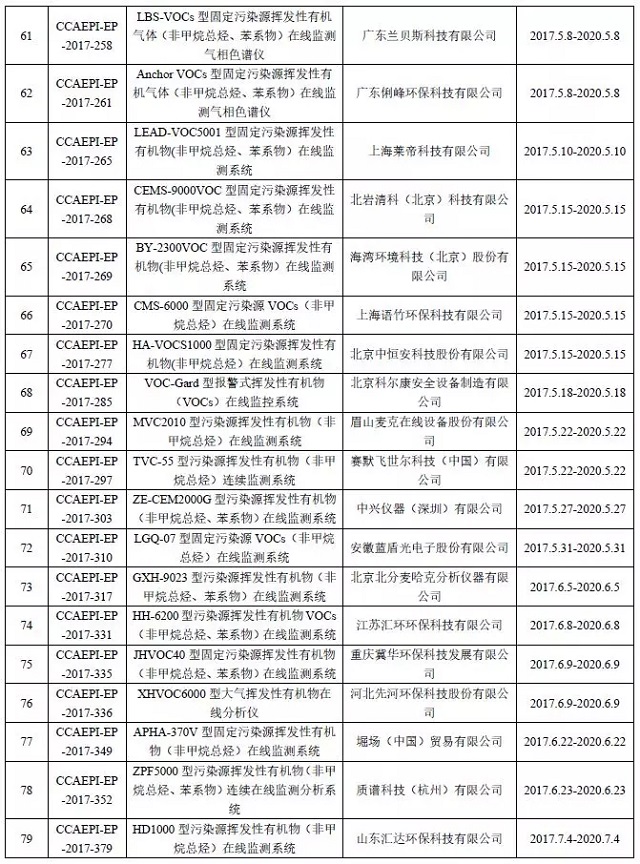 揮發(fā)性有機物儀器設(shè)備認證獲證單位名錄