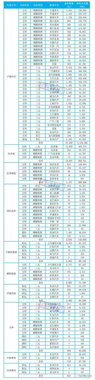 與此同時(shí),前十競(jìng)爭(zhēng)格局發(fā)生重大變化。其中,億緯鋰能在客車市場(chǎng)放量,挺進(jìn)裝機(jī)量排名第三;卡耐、鵬輝能源排名逐步靠前,而國(guó)軒、力神排名開(kāi)始下滑;比克電池跌出前十,河南鋰動(dòng)新晉前十。