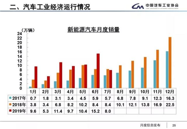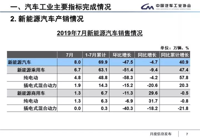 8月12日,中汽協(xié)發(fā)布2019年7月汽車行業(yè)產銷數(shù)據(jù),其中,新能源汽車產銷分別完成8.4萬輛和8萬輛,比上年同期分別下降6.9%和4.7%。