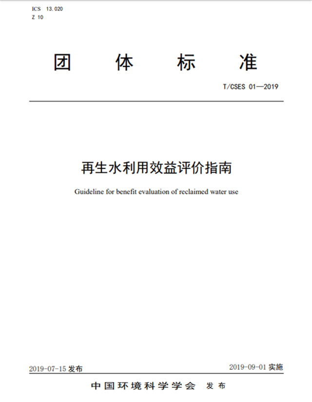 2019年7月15日,中國環(huán)境科學學會團體標準《再生水利用效益評價指南》正式發(fā)布,標準編號為“T/CSES 01-2019”。該標準由中國環(huán)境科學學會水處理與回用專業(yè)委員會(掛靠單位:清華大學)胡洪營教授團隊牽頭,中國城市規(guī)劃設(shè)計研究院、北京市環(huán)境保護科學研究院、信開水環(huán)境投資有限公司、光大水務(深圳)有限公司等作為參編單位共同起草,充分吸納了生產(chǎn)、科研、用戶等方面有代表性的技術(shù)力量共同編寫標準,形成以市場為導向、研究機構(gòu)為支撐、產(chǎn)學研用相結(jié)合的組織模式。