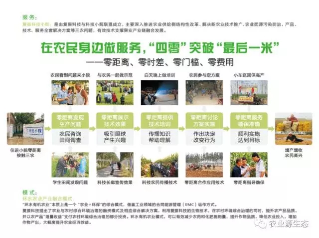 復(fù)振科技未來也在探索區(qū)域性環(huán)境解決方案平臺。平臺將與E20環(huán)境平臺、新農(nóng)村建設(shè)聯(lián)盟,在全國建立基于區(qū)域綜合環(huán)境/水流域環(huán)境的原產(chǎn)地農(nóng)業(yè)生態(tài)化能力。同時(shí)復(fù)振科技通過產(chǎn)業(yè)需求與地方政府聯(lián)合建立道地藥材、地理標(biāo)志產(chǎn)品、有機(jī)產(chǎn)品的原產(chǎn)地環(huán)境綜合支撐能力,提供基于產(chǎn)業(yè)需求的生態(tài)環(huán)境規(guī)劃與項(xiàng)目實(shí)施。未來復(fù)振科技將建立基于環(huán)水農(nóng)業(yè)的農(nóng)業(yè)+環(huán)保增量PPP模式;借鑒工業(yè)領(lǐng)域的合同能源管理(EMC)運(yùn)作模式,復(fù)振科技提出了農(nóng)業(yè)與農(nóng)村綜合環(huán)境治理的融資模式及相應(yīng)綜合解決方案,同時(shí)企業(yè)也將吸引更多合作伙伴合作共同推進(jìn)平臺的發(fā)展。