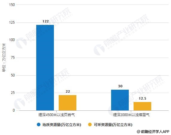 根據(jù)全國(guó)油氣資源動(dòng)態(tài)評(píng)價(jià)結(jié)果,我國(guó)天然氣已探明地質(zhì)儲(chǔ)量為5.44萬(wàn)億立方米,其中常規(guī)天然氣4.4萬(wàn)億立方米,頁(yè)巖氣1224萬(wàn)立方米,煤層氣3344萬(wàn)立方米。資源潛力方面,我國(guó)天然氣地質(zhì)資源量90萬(wàn)億立方米,可采資源量50萬(wàn)億立方米;頁(yè)巖氣埋深4500米以淺地質(zhì)資源量122萬(wàn)億立方米,可采資源量22萬(wàn)億立方米;煤層氣埋深2000米以淺地質(zhì)資源量30萬(wàn)億立方米,可采資源量12.5萬(wàn)億立方米。