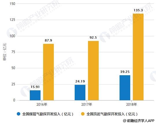 2016-2018年全國(guó)煤層氣、頁(yè)巖氣勘探開(kāi)發(fā)投入統(tǒng)計(jì)情況