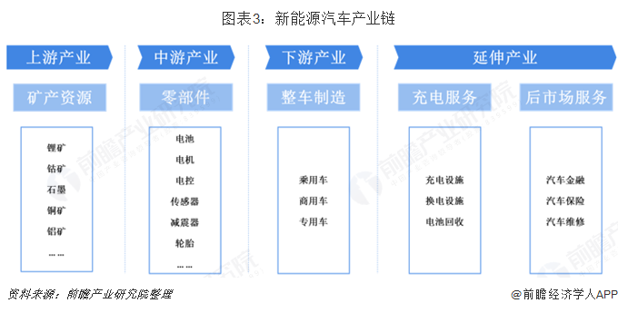 從產(chǎn)業(yè)鏈角度來看,新能源汽車包括原材料、正極材料、負(fù)極材料、隔膜、電解液、電芯及PACK、鋰電設(shè)備、電機(jī)電控以及整車制造、充電樁、汽車租賃等環(huán)節(jié)。其中,原材料包括鋰、鈷等礦產(chǎn)資源;正極材料、負(fù)極材料、電解液、隔膜等共同構(gòu)成電芯及PACK;動(dòng)力電池、驅(qū)動(dòng)電機(jī)、電控三大系統(tǒng)是構(gòu)成整車的核心部件;此外,整車制造、充電樁及運(yùn)營、汽車租賃等共同構(gòu)成新能源汽車產(chǎn)業(yè)鏈的下游。