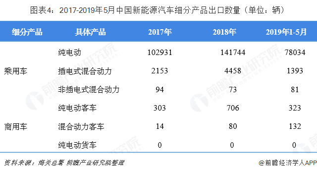 根據(jù)中國海關(guān)統(tǒng)計,2018年我國純電動轎車及越野車出口數(shù)量為14.17萬輛,占新能源汽車出口量的96.38%,出口金額合計1.3億美元。截至2019年5月,我國純電動轎車及越野車出口累計達到7.8萬輛,占新能源汽車出口量的97.59%,出口金額合計達到0.9億美元。