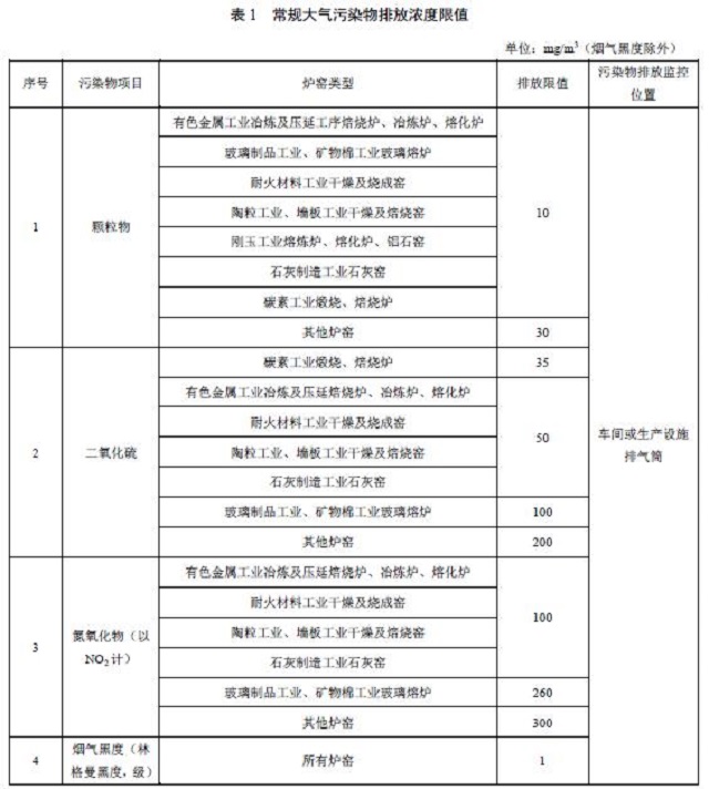 工業(yè)爐窯大氣污染物排放標(biāo)準(zhǔn)