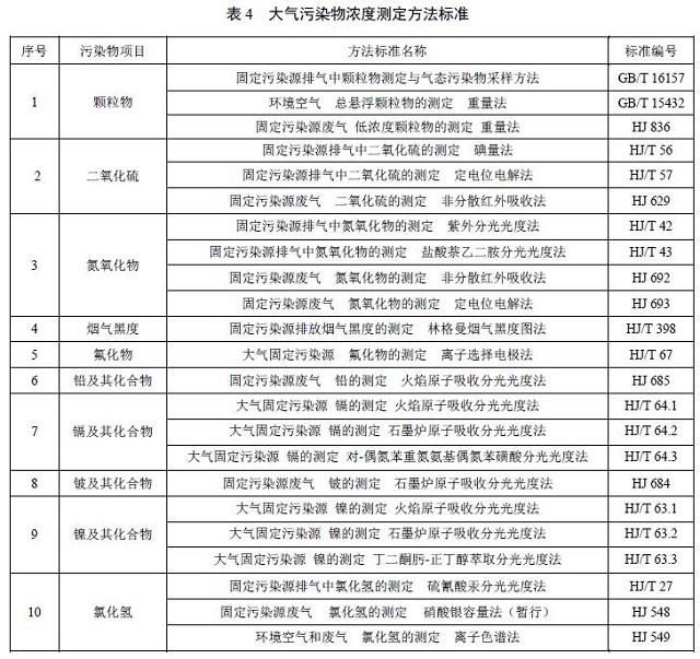 5.1.7 對大氣污染物排放濃度的測定采用表4所列的方法標(biāo)準(zhǔn)。