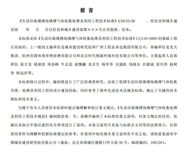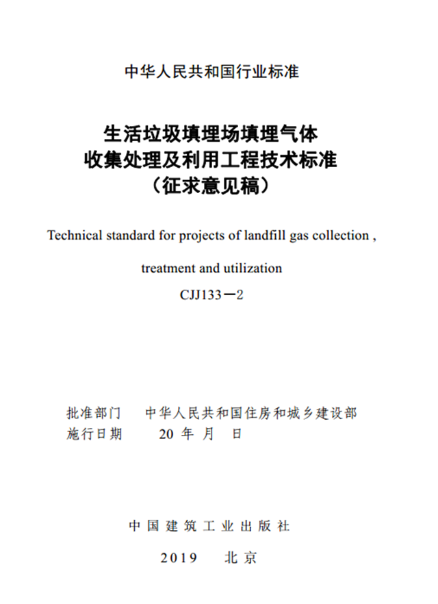 住建廳:《生活垃圾填埋場填埋氣體收集處理及利用工程技術標準 (征求意見稿)》