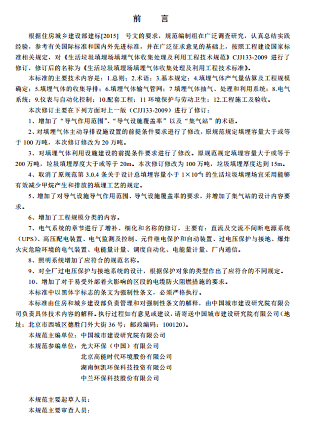 根據(jù)住房和城鄉(xiāng)建設部《關于印發(fā)2016年工程建設標準規(guī)范制訂、修訂計劃的通知》(建標標函〔2015〕274號),我部組織中國城市建設研究院有限公司等單位對行業(yè)標準《生活垃圾填埋場填埋氣體收集處理及利用工程技術標準(征求意見稿)》進行了修訂,現(xiàn)向社會公開征求意見,有關單位和公眾可通過以下途徑和方式提出反饋意見: