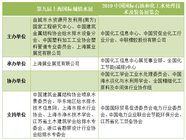 2019年9月18日,水處理領(lǐng)域兩大盛會——第九屆上海國際城鎮(zhèn)給排水水處理展覽會、2019中國國際石油和化工水處理技術(shù)及裝備展覽會將在上海新國際博覽中心盛大開幕。讓我們先來深入了解一下具體細節(jié)。