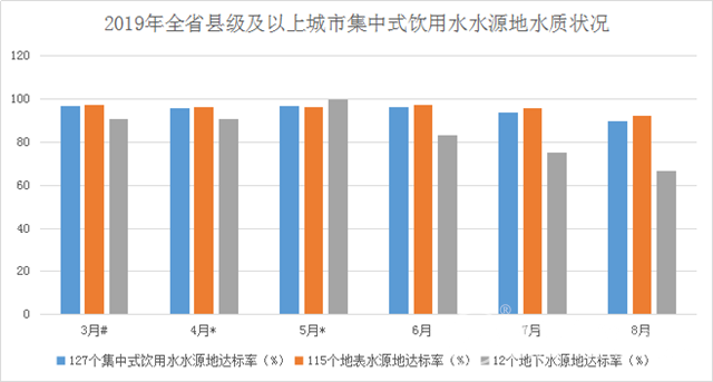 可以明顯看出,水質(zhì)波動仍不能忽略,不過【集中式飲用水水源地達Ⅲ類比例】控制得較為穩(wěn)定。那就再來看下2019年全省縣級及以上城市集中式飲用水水源地水質(zhì)狀況:
