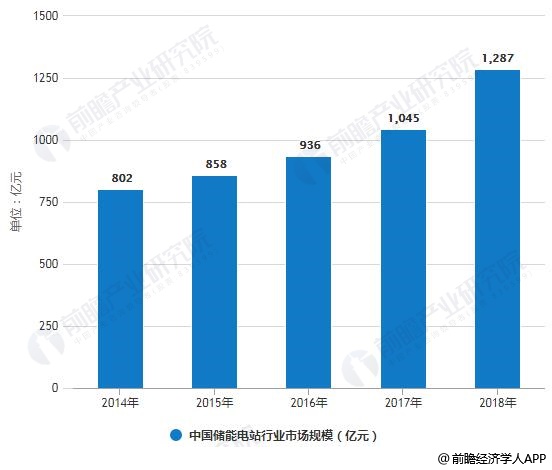 2018年中國儲能電站行業(yè)市場規(guī)模達到1278億元