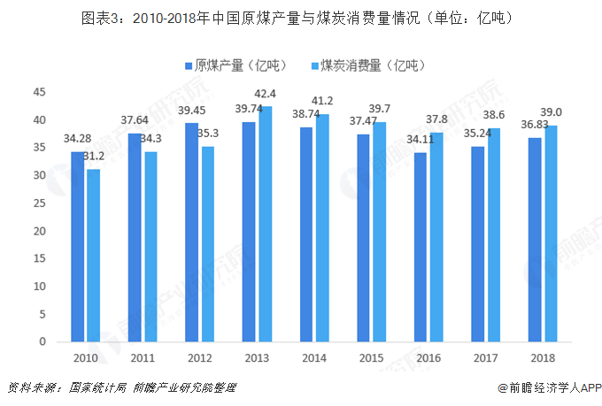 2018年,全年原煤產(chǎn)量36.8億噸,同比增長4.5%,連續(xù)兩年出現(xiàn)增長。煤炭供給側結構性改革深入推進,“十三五”煤炭去產(chǎn)能主要目標基本完成。2018年,我國煤炭消費總量達到39億噸,同比增長1.0%。這是繼2017年以來煤炭消費連續(xù)第二年出現(xiàn)增長。
