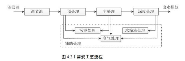 4.2.3生活垃圾焚燒發(fā)電廠、生活垃圾轉(zhuǎn)運站等垃圾處理設(shè)施產(chǎn)生的滲瀝液,處理工藝宜選擇“預(yù)處理+主處理+深度處理”組合工藝。