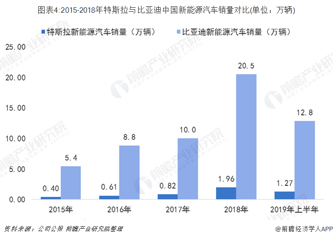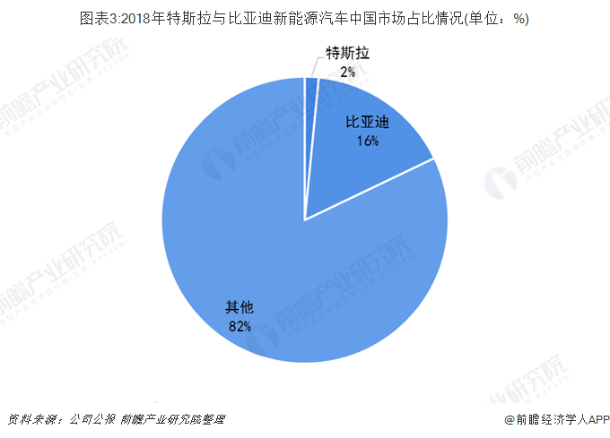 2018年中國新能源汽車銷量比亞迪約為特斯拉10倍