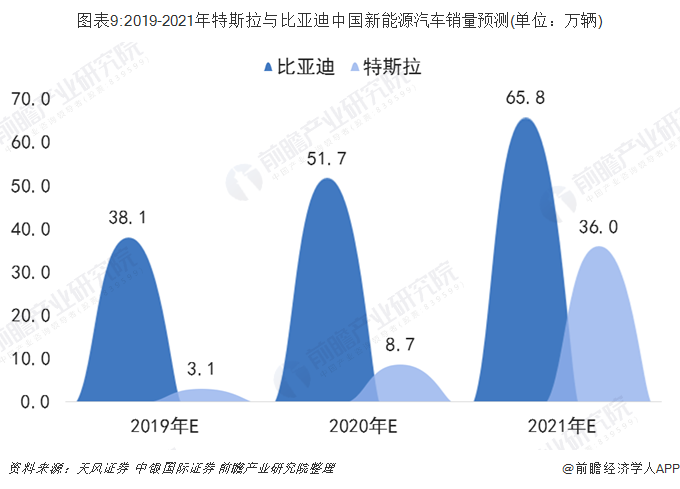 2018年6月,國家發(fā)改委、商務(wù)部出臺了《外商投資準(zhǔn)入特別管理措施(負(fù)面清單)(2018年版)》,取消了對新能源汽車的外資股比限制。特斯拉積極響應(yīng)政策,于2018年7月正式簽約上海臨港,成為中國放寬汽車行業(yè)外資股比限制后首家在華獨(dú)資建廠的外資車企,并于2019年1月正式開始建設(shè)上海超級工廠,預(yù)計2019年底投產(chǎn)。天風(fēng)證券預(yù)計,到2021年,特斯拉在中國的新能源汽車銷量銷量將超36.0萬輛。