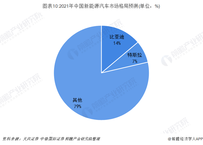 2015-2018年中國新能源汽車的復(fù)合增長率為55.97%,前瞻預(yù)計,2021年,中國新能源汽車銷量將超477萬輛。因此2021年,比亞迪將占中國新能源汽車總銷量的14%,特斯拉約為7%。