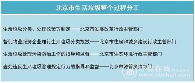 整個(gè)垃圾分類過程中,政策規(guī)章等制定、監(jiān)督和執(zhí)行處罰等責(zé)任主體,北京也進(jìn)行了明確,并要求城市中的各個(gè)管理部門之間,相互協(xié)調(diào)配合,共同做好生活垃圾管理的相關(guān)工作。