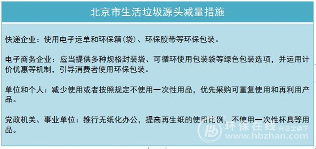 實(shí)踐證明,從垃圾產(chǎn)生的源頭抓起是關(guān)鍵,尤其是一些近年來發(fā)展火爆的行業(yè),比如快遞、餐飲、住宿和外賣等。因此,北京從個(gè)人、企事業(yè)機(jī)關(guān)單位、電子商務(wù)企業(yè)、快遞企業(yè)、餐飲服務(wù)業(yè)和住宿經(jīng)營企業(yè)抓起,減少垃圾產(chǎn)生量,引導(dǎo)使用環(huán)保用品或材料。