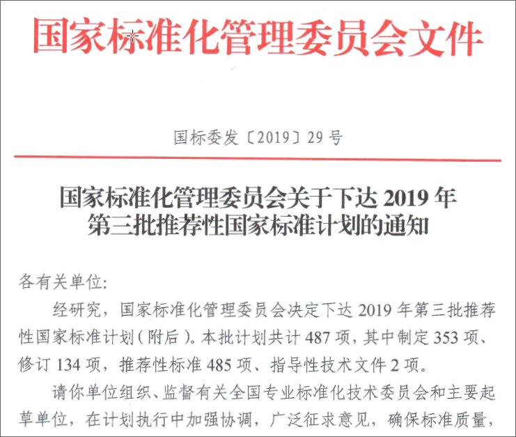 相關(guān)資料下載:國(guó)家標(biāo)準(zhǔn)化管理委員會(huì)關(guān)于下達(dá)2019第三批推薦性國(guó)家標(biāo)準(zhǔn)計(jì)劃的通知.pdf