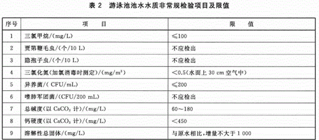 眾所周知,我國在2007年就發(fā)布了游泳池水質(zhì)標(biāo)準(zhǔn)(CJ/T—2007),隨后經(jīng)過修訂,被游泳池水質(zhì)標(biāo)準(zhǔn)(CJ/T—2016)。增加水質(zhì)常規(guī)檢驗(yàn)、非常規(guī)檢驗(yàn)等6個(gè)術(shù)語和定義;增加了異養(yǎng)菌等8項(xiàng)非常規(guī)檢驗(yàn)項(xiàng)目及限值和檢驗(yàn)方法;修改了渾濁度、PH值、菌落總數(shù)、總大腸菌群等項(xiàng)目限值等。