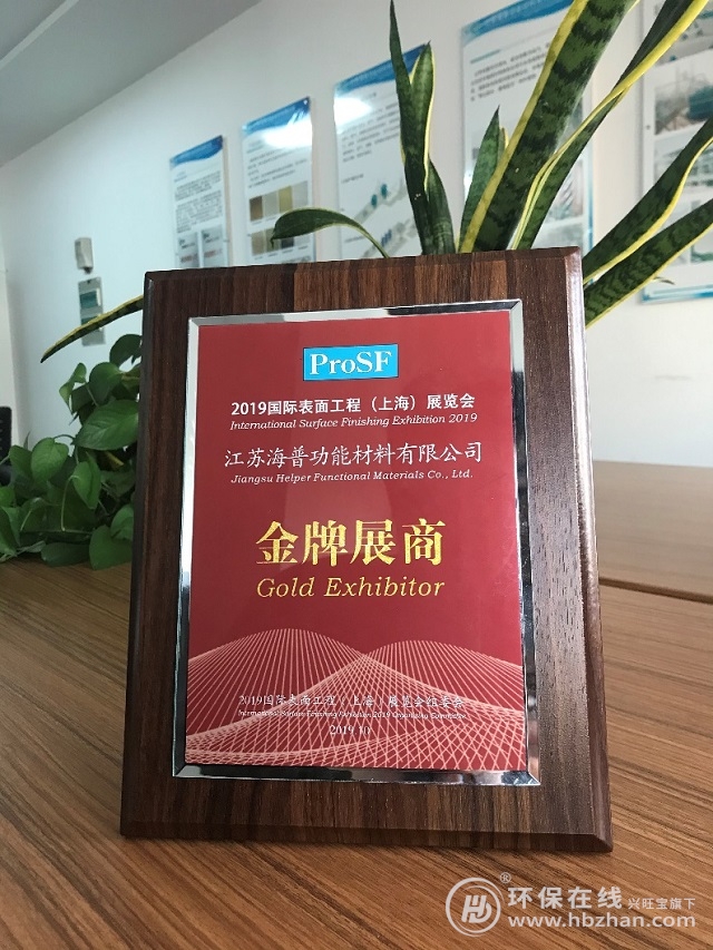 江蘇海普的特種吸附材料和電鍍廢水處理技術(shù)在展會上吸引了許多電鍍相關(guān)環(huán)保需求企業(yè)的駐足,而海普也榮獲了組委會頒發(fā)的“金牌展商”榮譽(yù)稱號。
