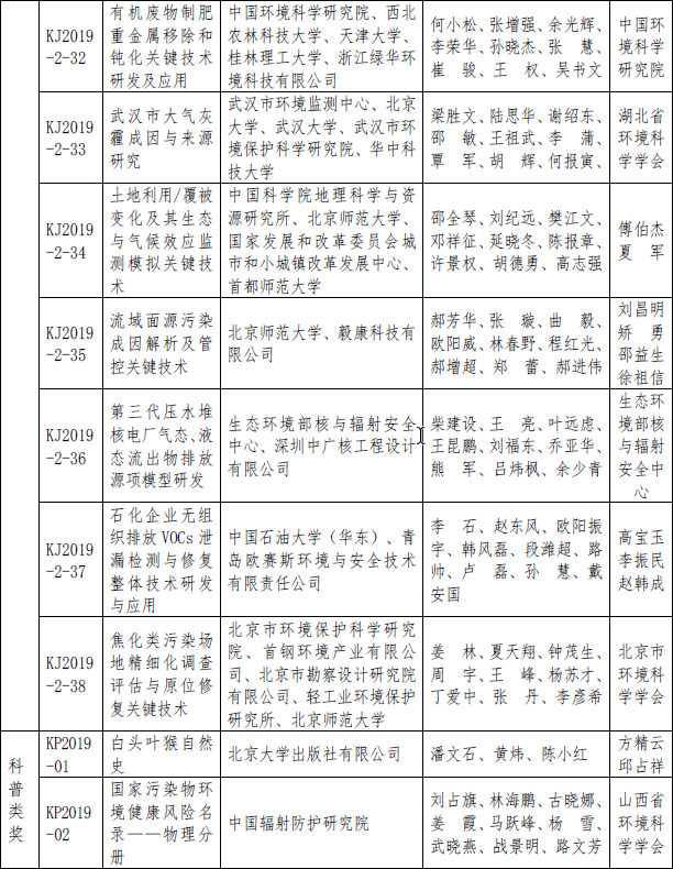 相關(guān)資料下載:2019 年度環(huán)境保護科學(xué)技術(shù)獎擬授獎項目名單.pdf