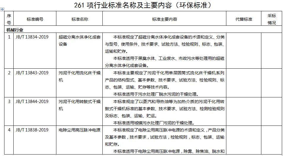 261項行業(yè)標(biāo)準(zhǔn)報批公示