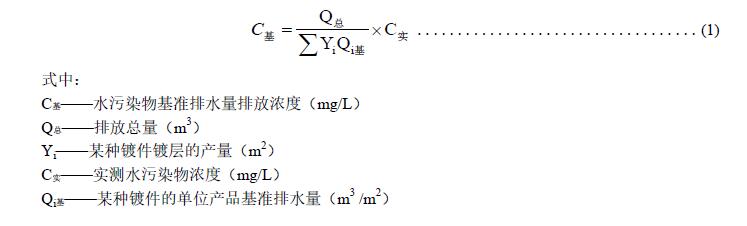 用于核定水污染物排放標(biāo)準(zhǔn)濃度而規(guī)定的生產(chǎn)單位面積鍍件鍍層的廢水排放量上限值。
