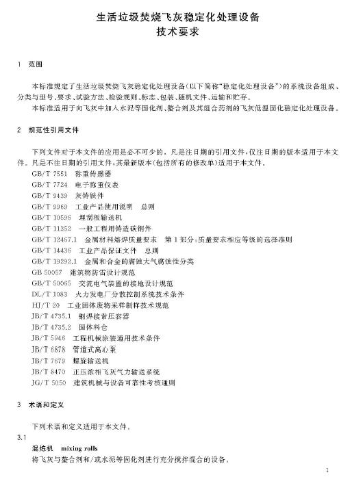 12月1日起實施 住建部發(fā)布《生活垃圾焚燒飛灰穩(wěn)定化處理設備技術要求》