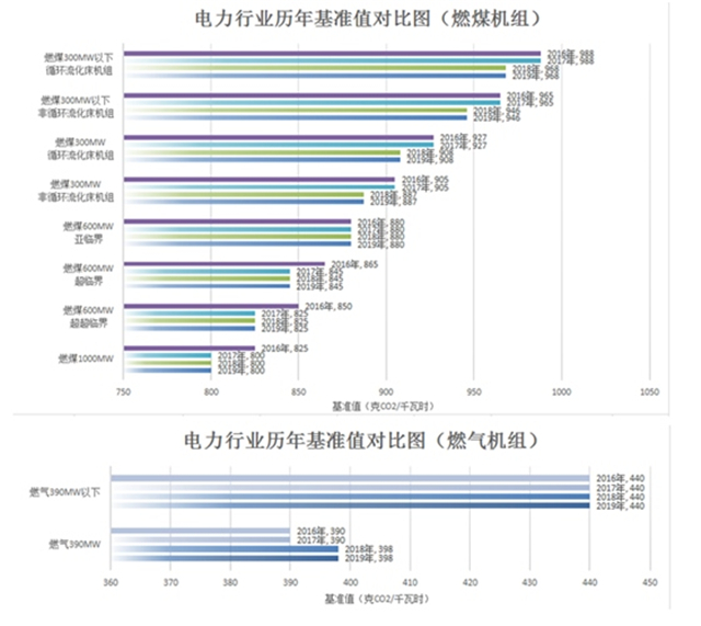 電力行業(yè)2019年度,增設(shè)了分布式燃料熱電聯(lián)產(chǎn)機(jī)組基準(zhǔn)線。同時(shí)對(duì)特殊燃料發(fā)電機(jī)給予明確定義,即摻燒燃料燃燒排放占機(jī)組全部排放比例不小于10%。歷年基準(zhǔn)值對(duì)比如下: