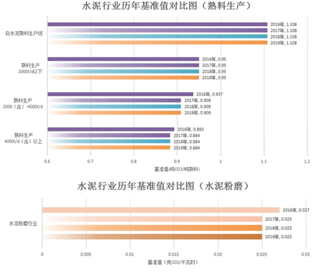 水泥行業(yè)2019年度將其他粉磨企業(yè)(工序)配額由歷史法調(diào)整為歷史強(qiáng)度法。歷年基準(zhǔn)值對(duì)比如下: