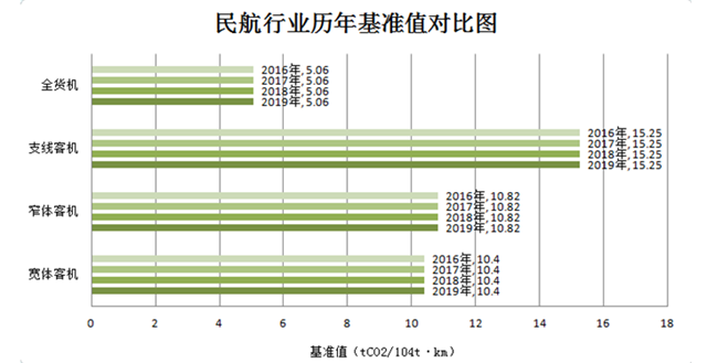 2019年度民航行業(yè)配額分配基準(zhǔn)線基準(zhǔn)值較2018年度沒(méi)有變化,歷年基準(zhǔn)值對(duì)比如下: