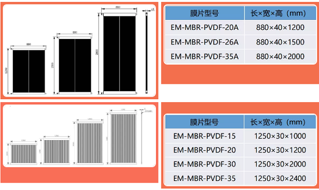 同時,新一代膜絲產(chǎn)品GF20對應(yīng)的簾式MBR膜片新產(chǎn)品EM-MBR-PVDF-20A,EM-MBR-PVDF-26A,EM-MBR-PVDF-35A也同期推出,以滿足客戶更多需求。GF16膜絲對應(yīng)的其他規(guī)格、型號膜組件后期也將陸續(xù)推出,敬請關(guān)注!