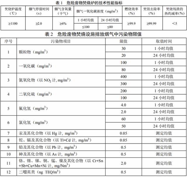 《危險廢物焚燒污染控制標(biāo)準(zhǔn)》
