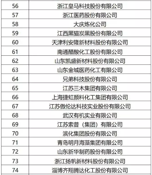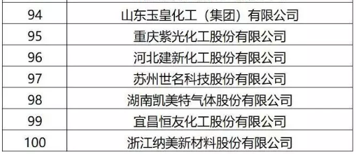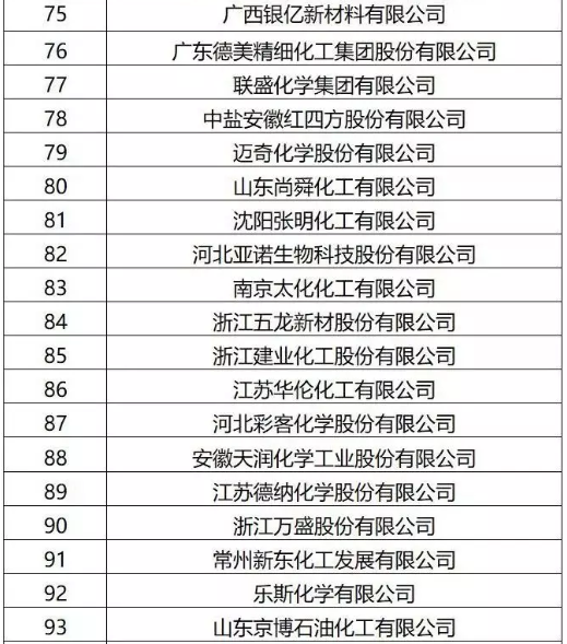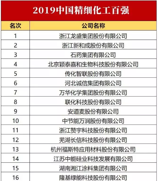 2019中國精細(xì)化工百強(qiáng)名單