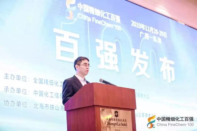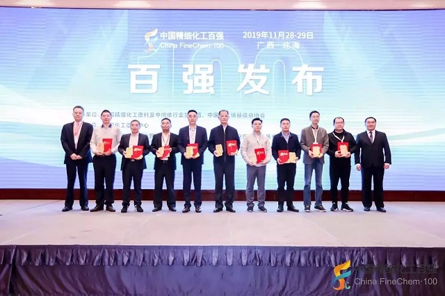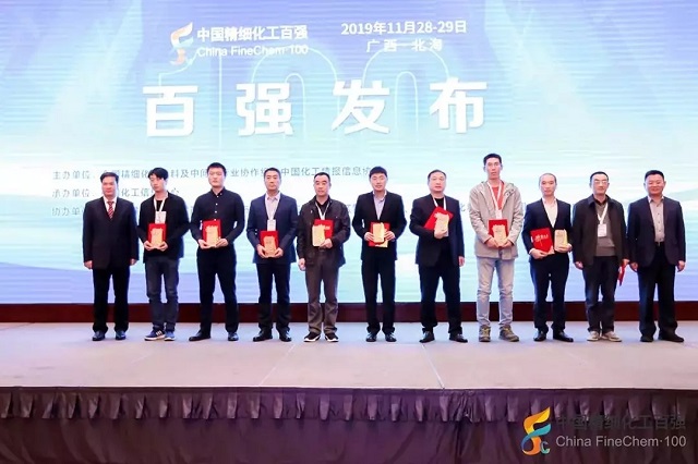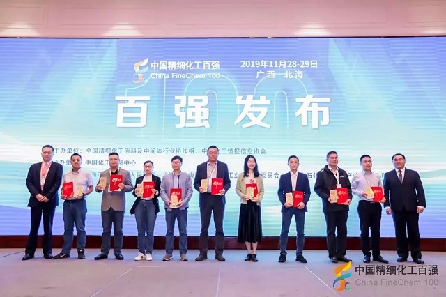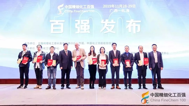 2019年11月28日,在由全國精細(xì)化工原料及中間體行業(yè)協(xié)作組、中國化工情報(bào)信息協(xié)會在廣西北海聯(lián)合主辦,中國化工信息中心承辦,北海市鐵山港區(qū)人民政府、北海市鐵山港(臨海)工業(yè)區(qū)管理委員會協(xié)辦的“第十九屆國際精細(xì)化工原料及中間體(鐵山港)峰會暨2019中國精細(xì)化工百強(qiáng)發(fā)布會”上,公布了“2019中國精細(xì)化工百強(qiáng)”榜單。
