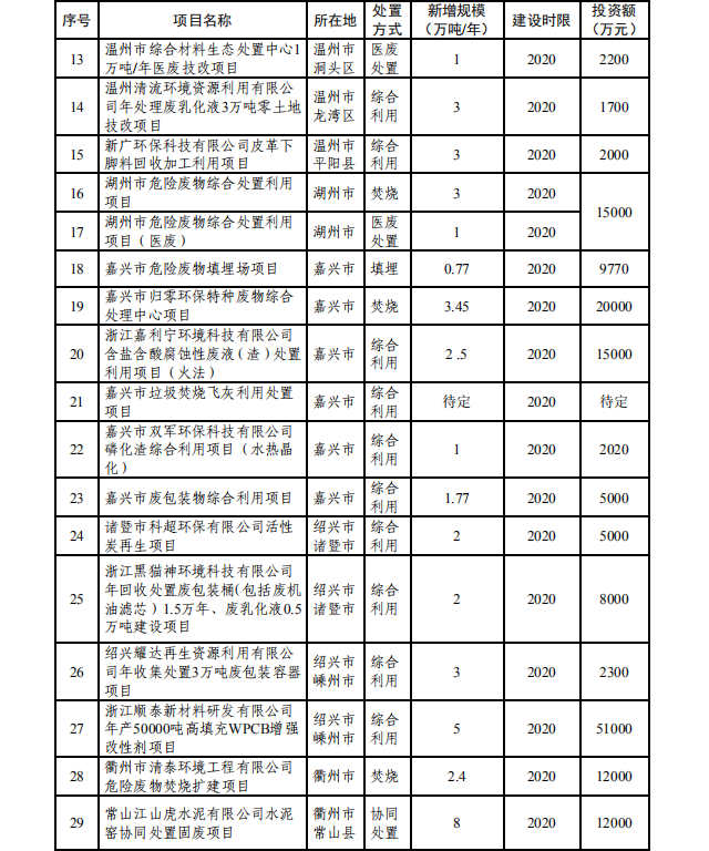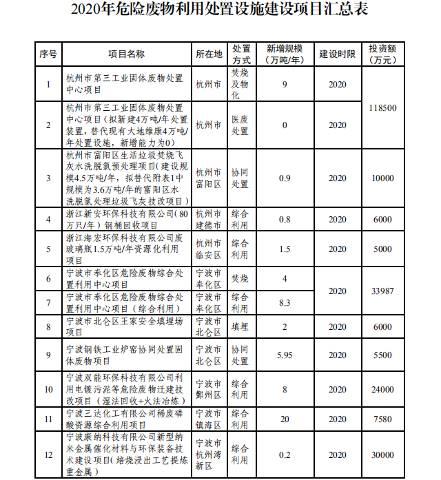 附2020年危險(xiǎn)廢物利用處置設(shè)施建設(shè)項(xiàng)目匯總表
