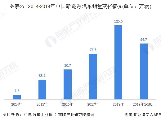 受益于政策的優(yōu)惠,我國新能源汽車市場從2014年開始快速發(fā)展,新能源汽車產(chǎn)銷量大幅上升;隨后2016、2017年受到騙補事件及補貼倒退的影響,產(chǎn)銷量增速放緩。根據(jù)中國汽車工業(yè)協(xié)會統(tǒng)計據(jù)顯示,2018年國內(nèi)新能源汽車產(chǎn)量為127萬輛,比2017年同期增長59.9%。目前,我國新補貼政策已實施,車型形成新舊交替局面。根據(jù)中汽協(xié)數(shù)據(jù)顯示,2019年1-10月,我國新能源汽車產(chǎn)量為98.3萬輛,同比增長11.7%,銷量為94.7萬臺,同比增長10.1%,增速均有所放緩。