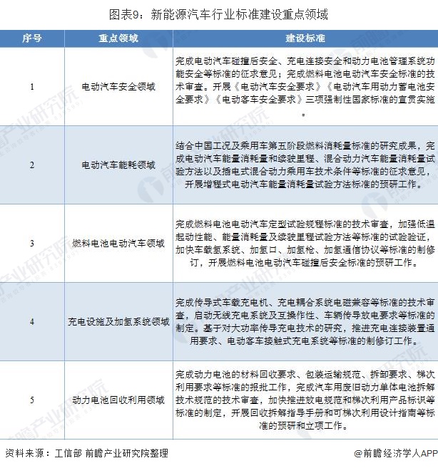 為此,2019年5月,工信部發(fā)布《2019年新能源汽車標準化工作要點》,提出要不斷優(yōu)化完善新能源汽車標準體系。并制定了五大新能源汽車標準化工作要點,主要內(nèi)容如下: