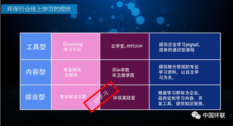 當(dāng)前環(huán)保行業(yè)人才缺口達(dá)300萬,且存在現(xiàn)有人員崗位技能合格率低以及企業(yè)和個(gè)人自我賦能乏力的問題。大型企業(yè)在提升工作人員技能方面,一般采取企業(yè)內(nèi)訓(xùn)、購買培訓(xùn)服務(wù)及外出參加培訓(xùn)的方式,但95%的中小微企業(yè)由于資金、管理機(jī)制等方面的不足,面臨員工培訓(xùn)機(jī)制不完善的困境。對此,阮洪銀提出了6o學(xué)習(xí)的模式:即將終身學(xué)習(xí)、系統(tǒng)化學(xué)習(xí)、組織化學(xué)習(xí),學(xué)習(xí)與愛好多重,學(xué)習(xí)與生活多重,多對多,老師與學(xué)生角色多重,學(xué)習(xí)與營銷多重等六維度相結(jié)合,重新定義“知識(shí)”含義與獲取路徑,重新定義企業(yè)商業(yè)信息宣發(fā)路徑。