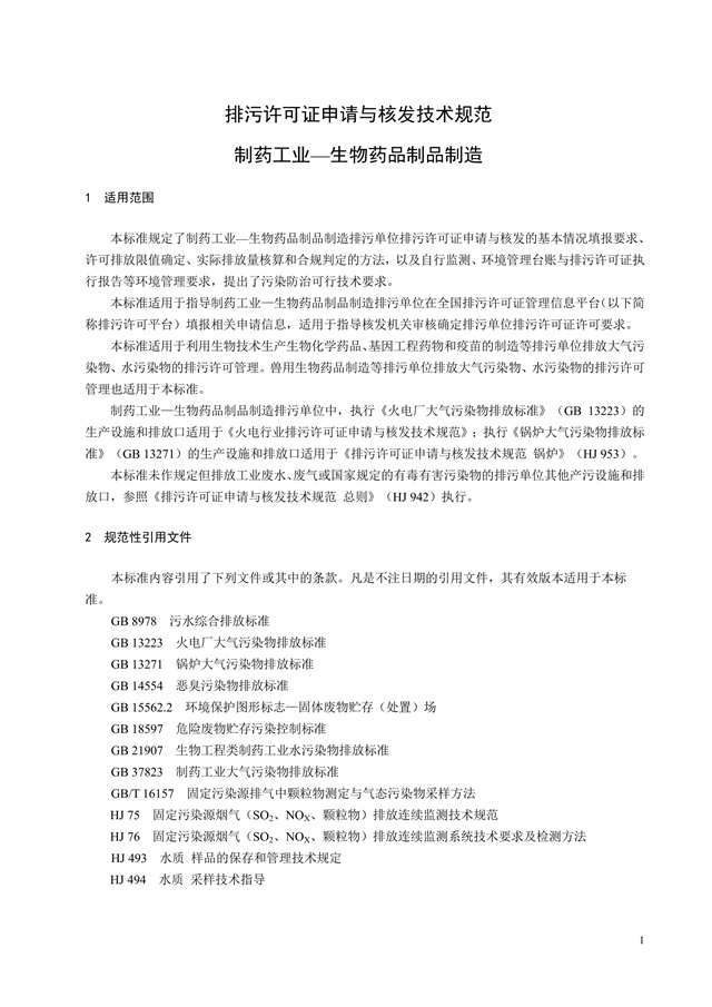 排污許可證申請與核發(fā)技術(shù)規(guī)范 制藥工業(yè)—生物藥品制品制造