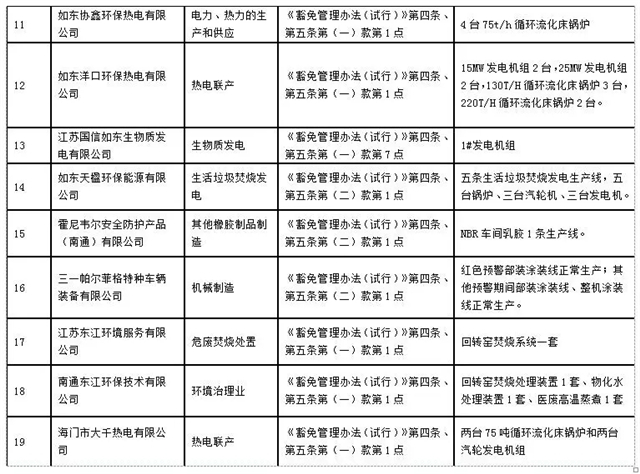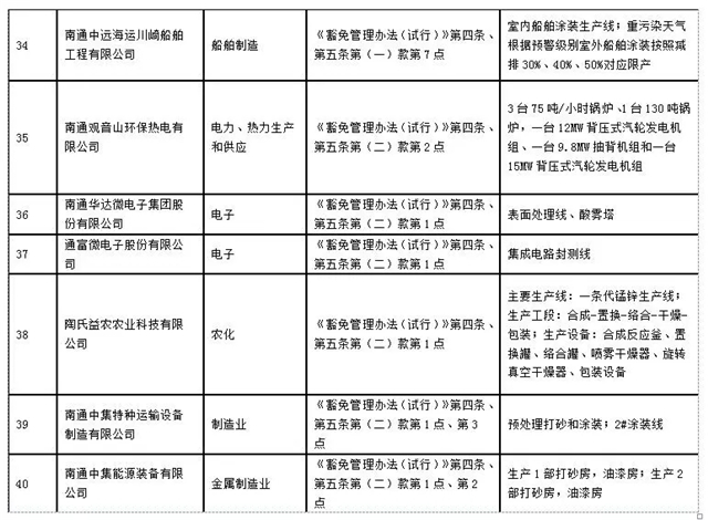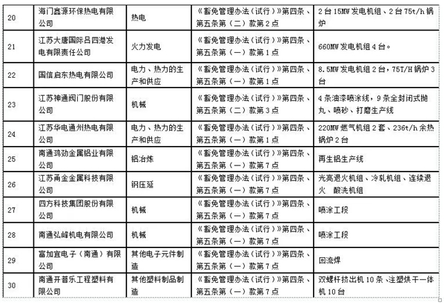 南通市2019-2020年秋冬季錯峰生產(chǎn)及重污染天氣應(yīng)急管控停限產(chǎn)豁免名單