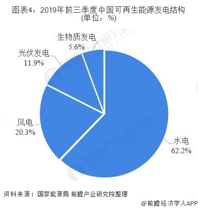 同其他類型可再生能源利用水平相比,目前,我國(guó)光伏發(fā)電規(guī)模仍低于水力發(fā)電和風(fēng)力發(fā)電。截至2019年9月底,全國(guó)可再生能源發(fā)電量達(dá)14371億千瓦時(shí),同比增長(zhǎng)約11%。其中,水電8938億千瓦時(shí),同比增長(zhǎng)7.9%,占總體的62.2%;風(fēng)電2914億千瓦時(shí),同比增長(zhǎng)8.9%,占總體的20.3%;光伏發(fā)電1715億千瓦時(shí),同比增長(zhǎng)28.1%,占總體的11.9%;生物質(zhì)發(fā)電804億千瓦時(shí),同比增長(zhǎng)19.4%,占總體的5.6%。