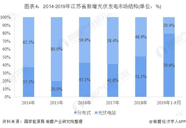 原標題:2019年江蘇省光伏發(fā)電行業(yè)發(fā)展現(xiàn)狀 分布式市場份額逐步提升