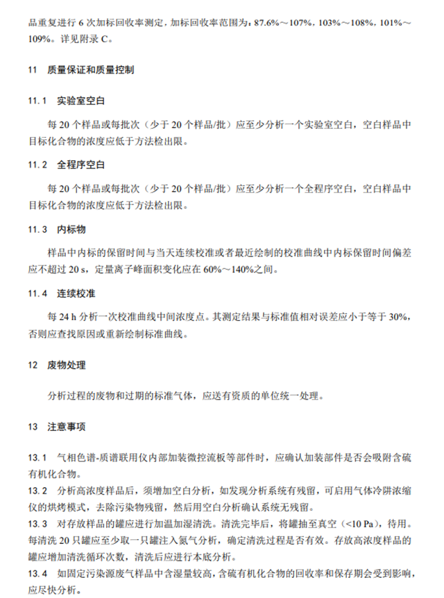 為貫徹《中華人民共和國環(huán)境保護法》和《中華人民共和國大氣污染防治法》,保護生態(tài)環(huán)境,保障人體健康,規(guī)范固定污染源廢氣中含硫有機化合物的測定方法,制定本標準。本標準規(guī)定了測定固定污染源廢氣中甲硫醇等8種含硫有機化合物的氣袋采樣-預濃縮/氣相色譜-質譜法。本標準的附錄A為規(guī)范性附錄,附錄B和附錄C為資料性附錄。本標準為首次發(fā)布。