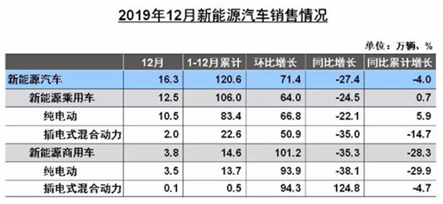 原標(biāo)題:【原創(chuàng)】2019年新能源汽車(chē)銷(xiāo)量120.6萬(wàn)輛 同比下降4%