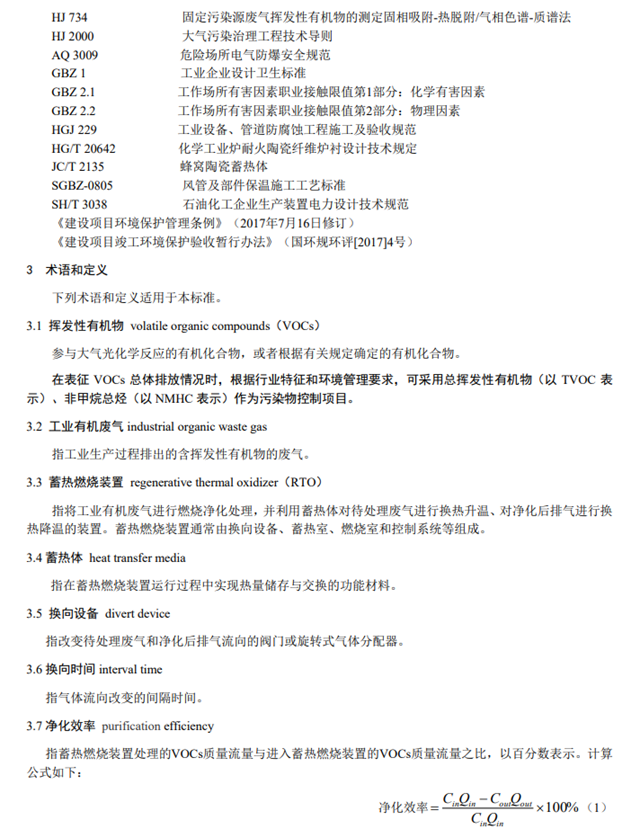 防治環(huán)境污染,改善生態(tài)環(huán)境質量,規(guī)范工業(yè)有機廢氣治理工程建設和運行管理,生態(tài)環(huán)境部制定《蓄熱燃燒法工業(yè)有機廢氣治理工程技術規(guī)范》,對工業(yè)有機廢氣蓄熱燃燒法治理工程的設計、施工、驗收和運行維護等提出了技術要求,于2020年1月14日開始實施。具體如下:
