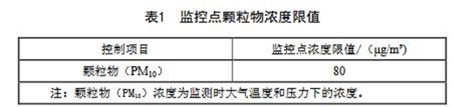 4.1自本標(biāo)準(zhǔn)實(shí)施之日起,所有施工場(chǎng)地監(jiān)控點(diǎn)顆粒物(PM10)濃度限值按表1的要求執(zhí)行。